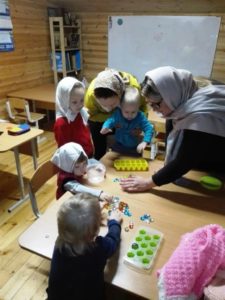27 февраля прошло первое занятие группы младших дошкольников «Ангелочек» при Воскресной школе Никольского храма. Участники кружка возрастом от 1 года до 3 лет будут знакомится с красотой окружающего Божьего мира, делать поделки, развивать мелкую моторику и многое другое. Желаем нашим самым юным прихожанам и их педагогу М.М.Гончаровой помощи Божией в этом благом начинании.