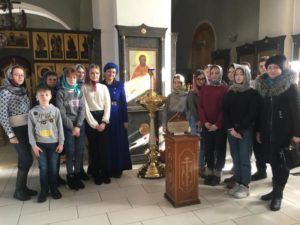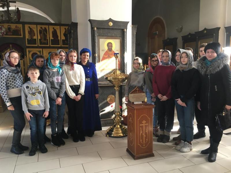 По благословению настоятеля храма свщмч.Сергия Подольского  иерея Олега Демидова 2 марта   была проведена  тематическая просветительская экскурсия по храму. Гостями были учащиеся  8а класса Гимназии имени Подольских курсантов, классный руководитель Кашубина Ольга Фёдоровна,преподаватель курса Духовного краеведения гимназии Петракова Марина Анатольевна. Экскурсию провела руководитель воскресной школы Худякова Светлана Ивановна.Восьмиклассники входят в жизнь, ставят перед собой образцы для подражания,задумываются в чём цель жизни. Мы живём в России, наши предки и мы объединены общим пониманием того,что все мы братья и сёстры во Христе. Один из старцев сказал: «В Бога все верят,но не все об этом знают». Наши предки находили душевное утешение в чтении Житий христианских святых и подвижников,с молитвой о помощи обращались к святым заступникам. Экскурсовод поведала  ребятам о православных храмах, их архитектуре,внутреннем устройстве,церковных таинствах, иконах. Особое внимание было уделено рассказу об иконах иконостаса. В ходе экскурсии ребята не только узнали много интересного о житии святых,истории икон,но также прослушали фрагменты церковных песнопений, кондаков, акафистов. После интересной беседы ребята пили чай со сладостями, тихо обменивались впечатлениями. Главное, дети осознали, что нужно  следовать заповедям Сына Божия: «Любите друг друга» и «Поступай с другими так, как хочешь,чтобы поступали с тобой».