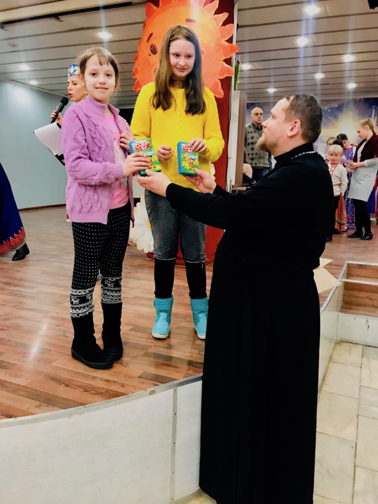 5 марта ответственный за благотворительность и социальное служение в Подольском благочинии, настоятель Никольского храма священник Алексий Суриков и преподаватель Воскресной школы Никольского храма, волонтер Подольского благочиния М.М.Гончарова посетили дк. им.1 мая мкр.Климовска г.о. Подольск, где прошел праздник, посвященный Масленице. Праздник был организован для детей из семей, состоящих на учете в Климовском центре социальной помощи семье и детям «Гармония». Священник Алексий поздравил ребят с Сырной седмицей и передал подарки от Подольского благочиния и волонтерского движения «Милосердие-Подольск», а волонтер Мария Гончарова подготовила для ребят увлекательные конкурсы.
