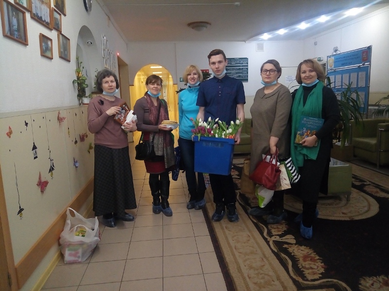 8 марта волонтеры движения «Милосердие — Подольск» и доброволец молодежного центра «Вектор» Дмитрий побывали в Климовском доме-интернате. Они поздравили проживающих 4 корпуса «Милосердие» с Международным женским днем и подарили различные подарки: многим — их фотографии в рамках, чему женщины были очень рады; Гертруде Павловне книгу от неизвестного жертвователя, которую она давно просила; Ольге — фломастеры (она мастер по раскрашиванию); Инне — рамки для ее рисунков (готовится уже к Пасхальной ярмарке). Также подарили много милых мелочей: коробочки для рукоделия, блокнотики, салфетки и т.д. У Дмитрия обязанность была особая — дарить женщинам цветы, небольшие букетики тюльпанов. Также по случаю праздника Масленицы раздавалось угощение — теплые вкусные блины и другие сладости. Такое внимание было им очень приятно женщинам, тем более из-за карантина они давно не встречали гостей. Общение и подарки создали праздничное настроение у проживающих, у медицинского персонала и у добровольцев. Художница Ирина показала свои новые рисунки и подарила один на память. Женщины благодарили и приглашали приходить чаще. Общение получилось очень светлым и радостным. Ведь общение и внимание — это то, чего так не хватает людям, прикованным к постели. Иногда пусть недолгий, но добрый и чуткий диалог может сделать больше, чем лекарства.
