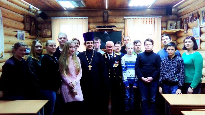 18 марта руководителем Центра «Ангелы» Подольского благочиния, специалистом по работе с молодежью МЦ «Максимум» Медведевым Сергеем Викторовичем в рамках празднования 90-летия Московской области, организована встреча с нашим земляком, капитаном первого ранга в отставке Владимиром Васильевичем Сельдевым, ровесником года Победы (родился в 1945 году). На встрече присутствовали воспитанники Центра «Ангелы» Подольского благочиния, молодежь из любительского объединения «Молодые помощники армии и флота» МЦ «Максимум», учащиеся МОУ СОШ № 13. С назидательным словом к собравшимся обратился настоятель Георгиевского храма г.о. Подольск священник Александр Никитин, он поздравил всех с Праздником Торжества Православия, призвал хранить Веру Православную, посещать Храм Божий и читать Священное Писание. Владимир Васильевич Сельдев боевой офицер подводник, проведший немалое время в автономках у берегов США, рассказал собравшимся о героях подростках Подмосковья, которые в годы ВОВ ценою собственных жизней совершали героические поступки во имя Победы над фашизмом!