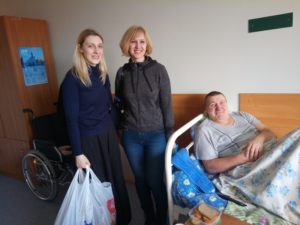Сегодня наши волонтеры навещали друзей в 4 корпусе Климовского дома-интерната для престарелых и инвалидов. После длительного карантина мы рады были не спеша пройти по комнатам, увидеть знакомые лица, узнать новости проживающих людей и, конечно, угостить чем-то вкусным. Практически все из них имеют инвалидность и ограничены в перемещении, но, на удивление, люди не отчаиваются и не унывают (хотя разные бывают ситуации). Добровольцы «Милосердие — Подольск» зашли к Виктору Т., посмотрели его иконы и передали бисер для новых работ (спасибо Ирине за пожертвование). Инна Б. продолжает осваивать технику рисунка акварелью, и им было о чем поговорить с Жанной. Многие люди расспрашивали про пост и таинства; кто-то показал, что сейчас читает; а кто-то поделился планами на будущее. Надежда Б. сообщила печальную новость: на днях у нее умер друг Андрей (он из этого же корпуса), просила помолиться о нем. Очень понравилось нам оформление холла на женском этаже. Все сделано красиво и с любовью. Пробыв в интернате около трех часов, пришло время уходить. Конечно, всем уделить внимание не удалось. Запомнились слова одной из женщин: » Приходите к нам. У нас нет ни дома, ни семьи. Многие уже здесь находятся более десяти лет…»