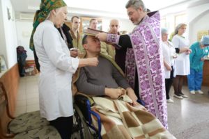 5 апреля протоиерей Петр Дынников настоятель Ильинского храма в Лемешеве Г.О. Подольск совершил таинство елея (соборование) в домовом храме в честь святителя Луки Архиепископа Крымского и Симферопольского при Подольском окружном госпитале.
