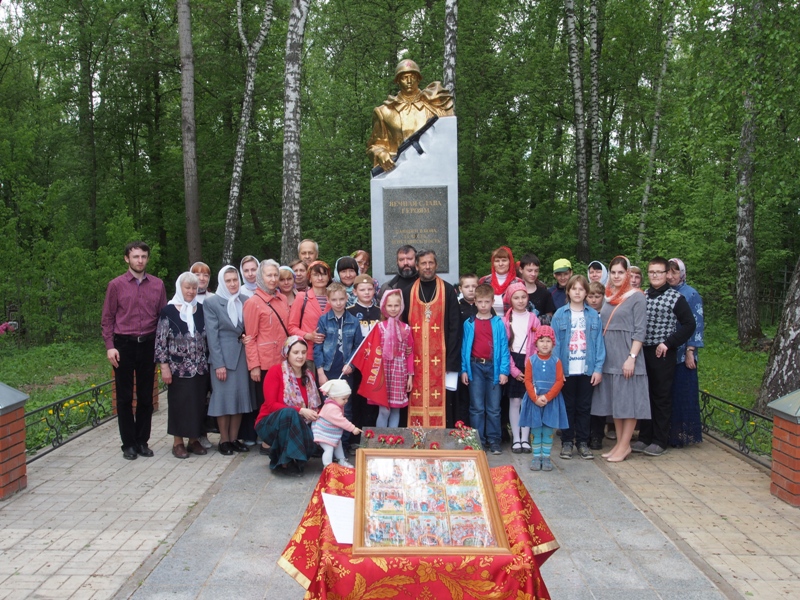 12 мая настоятель храма Воскресения Словущего д. Сертякино протоиерей Борис Трещанский, отслужил панихиду по воинам, погибшим на полях сражений Великой Отечественной войны, у памятника на старом кладбище, расположенном около деревни Тятино. На территории кладбища находится братская могила, в которой покоятся советские солдаты, умершие от ран в военном госпитале в годы Великой Отечественной войны. На месте захоронения установлен мемориал в виде скульптуры военнослужащего, высеченной из камня. Внизу постамента находится плита, на которой написаны имена погибших защитников Родины. Дети из воскресной школы, возложили цветы к памятнику, почтив память тех, кто отдал свои жизни ради свободы и мирного неба у нас над головой. Позвучала тематическая композиция, дети прочитали стихи: Сурикова Лера – о женщинах на войне Юлии Друниной, Голубцов Алеша «Мальчик из Поповки» С. Маршака, Заика Катя «Хотят ли русские войны». А в заключении все вместе исполнили гимн этого великого праздника «День Победы».