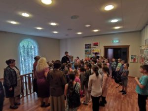 12 мая в Воскресной школе состоялось открытие выставки детского рисунка «Пасха Красная». На ней были представлены творческие работы кружка «Школы ремёсел», педагог Ильина М.В. и Художественной студии «Искусство и дети», педагог Бабаянц В.И. Рисунки, объединенные общей пасхальной тематикой, получились достаточно разные: кто-то представил корзину с веточками вербы, кто-то– вкусное угощение – крашеные яйца и куличи, а кто-то любимую семью. Но абсолютно все ребята передали особое, радостное настроение, с которым люди встречают Пасху. Вся выставка наполнена радостной атмосферой. Теперь рисунки юных художников радуют глаз учеников и прихожан нашего храма.