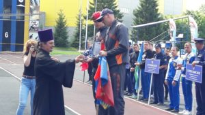 17-18 июня 2019 на стадионе «Пламя» Подольского учебного центра ФПС МЧС России стартовала областная спартакиада «Московской областной противопожарно-спасательной службы» — летнее первенство по пожарно-спасательному спорту. В соревнованиях приняли участие спортсмены из 21 территориального управления госучреждения Московской области. Заслуживает внимание тот факт, что в данных соревнованиях приняли участие не специально подготовленные спортсмены, а рядовые спасатели, круглосуточно несущие дежурство в противопожарно-спасательной службе. К участникам соревнования с приветственным словом обратился настоятель Георгиевского храма г.о. Подольск священник Александр Никитин. Он поздравил личный состав «Московской областной противопожарно-спасательной службы» с праздником Святой Троицы и обратил внимание, что готовность подвергнуть свою жизнь риску ради спасения жизни ближнего – это высокая христианская добродетель. В заключении, священнослужитель произнес слова благодарности спасателям, пожелал сил, терпения и Божией помощи в их труде.