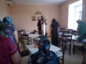 Жара на улице. Людей в отделении мало. И слава Богу — значит, тяжёлых тоже мало! Однако добровольцы волонтерского движения Подольского благочиния в любую погоду в субботу приходят во 2-ю гинекологию при Подольском роддоме, где часто в помощи нуждаются онкологические больные. Сегодня молебен о недужных отслужил клирик храма свмчн. Николая Подольского священник Павел Попов. Одна женщина Наталья смогла исповедоваться и причаститься Святых Христовых Таин. Она уже скоро выписывается. Другая больная ещё только готовится к операции, осталась задать волнующие вопросы. Волонтеры с радостью делятся знаниями, также обязательно приносят в отделение святую воду и духовную литературу.