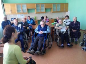 6 июля участники волонтерского движения Подольского благочиния  «Милосердие. Подольск» вместе с прихожанами Благовещенского храма дер. Матвеевское провели очередную встречу киноклуба в колясочном отделении климовского дома-интерната для престарелых и инвалидов. На встречу с волонтерами пришли 14 подопечных, которые с большим вниманием посмотрели представленный фильм «За имя мое» (режиссерская работа Марии Можар , сценарий Марии Козловой), снятый в 2005 году на учебной киностудии Всероссийского государственного института кинематографии им. С.А. Герасимова. Короткометражный, но очень пронзительный фильм, вызвавший у многих собравшихся слезы, емко вмещающий главные темы, которые по окончании просмотра и обсудили участники встречи: остаться человеком на пределе своих сил, проповедь любви, исходящая не из уст, а из личного примера мужества и любви к ближнему, способная отогреть ожесточенные сердца целого общества вокруг.  Поделившись своими мыслями и чувствами, все дружно решили напоследок посмотреть ещё одну из навел полюбившейся всем серии «Притчи» (Беларусьфильм). Время пролетело незаметно, в дружеской и уютной атмосфере, расставаясь выбрали тему для следующего просмотра: фильм о житие преподобного Сергия Радонежского, в канун празднования его памяти 18 июля.