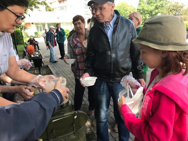Раздача горячих обедов для малоимущих стала для нас обычным делом. Уже более трех лет волонтеры «Милосердие — Подольск» в любое время года, в любую погоду — понедельник, среда, пятница 14 часов — в Екатерининском сквере. Привезли баки, помолились, раздали обеды, пообщались с пришедшими людьми и уехали. Кажется, все очень легко, но порой приходится решать много проблем, чтобы обеспечить раздачу обедов без перерывов и отмен. Мы всегда рады новым добровольцам, новым силам! Сегодня нашими помощниками стала многодетная семья: мама и трое ребятишек. Когда дети читают молитвы, их хочется слушать с особым вниманием. После обеда, многие подходили и благодарили за тёплую атмосферу. Голубям тоже досталось немного каши. Всё остались довольны. Люди накормлены, дети приобщились к доброму делу. Слава Богу!