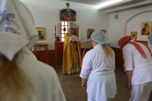 26 июля в день архангела Гавриила протоиерей Петр Дынников настоятель Ильинского храма в Лемешеве (с.Лемешово) Г.О. Подольск совершил Божественную литургию в домовом храме в честь святителя Луки Архиепископа Крымского и Симферопольского при Подольском окружном госпитале. После литургии он провел катехизическую беседу с женщиной-врачом, которая готовится принять крещение.