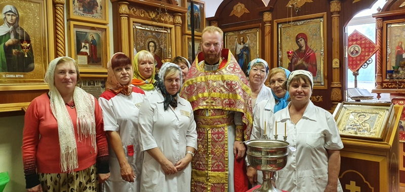 9 августа настоятель Покровского храма села Покров священник Дионисий Коськин совершил Божественную литургию в приписном храме св. вмч. Пантелеимона находящегося в сестринском отделении Подольской Городской больницы. В этот день исполнилось 20 лет отделению, в котором находится больничный храм. По окончании литургии священник Дионисий совершил водосвятный молебен и окропил палаты святой водой.