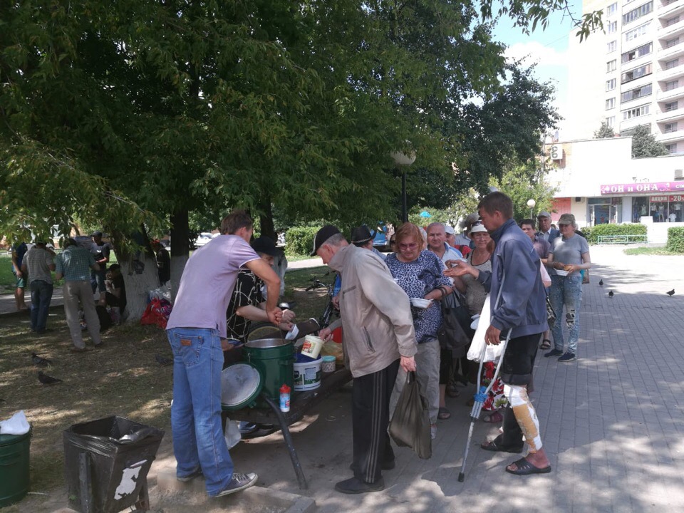 Во вторник состоялось кормление бездомных на станции «Подольск», организованное Подольским благочинием. Ежедневно бездомных, малоимущих и нуждающихся людей кормят вкусной едой из трёх блюд — первое, второе и чай с десертом. Для многих эти обеды стали спасением. Георгиевское Сестричество принимает участие в кормлении бездомных один раз в месяц, когда подходит наша очередь в череде кормящих волонтеров. Сегодня братья Георгиевского сестричества раздавали обеды, а перед едой все присутствующие обязательно помолились. Слава Богу за всё!