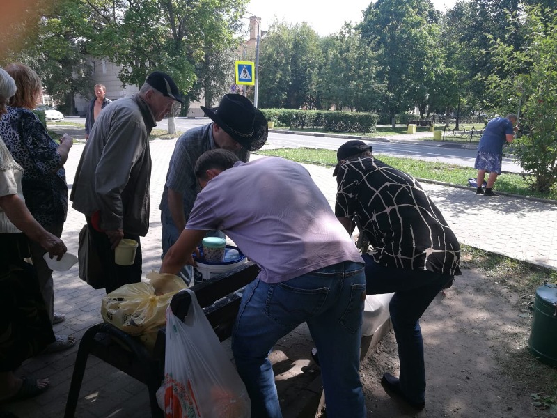 По вторникам каждого месяца братья Георгиевского сестричества несут послушание — кормление бездомных на станции «Подольск», организованное Подольским благочинием. Ежедневно бездомных, малоимущих и нуждающихся людей кормят вкусной едой из трёх блюд — первое, второе и чай с десертом. В кормлении, в своей череде, участвуют, практически, все храмы нашего благочиния. Для многих приходящих людей, в числе которых бездомные, пенсионеры, малоимущие и даже студенты горячие обеды стали серьёзной подмогой, а для некоторых -спасением. Сегодня братья Георгиевского сестричества раздавали обеды, а перед едой все присутствующие обязательно помолились.