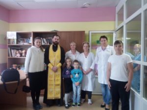 Сегодня настоятель Георгиевского храма и старшая сестра Георгиевского Сестричества приехали в 1 детское соматическое отделение Подольской городской больницы, с которым сестричество сотрудничает более 3-х лет. Батюшка освятил отделение, вместе с сотрудниками помолился о здравии работающих в нем, и о здравии юных пациентов, находящихся на лечении. Радостно, что многие детки вышли из палат и присутствовали на чине освящения. Слава Богу за всё!