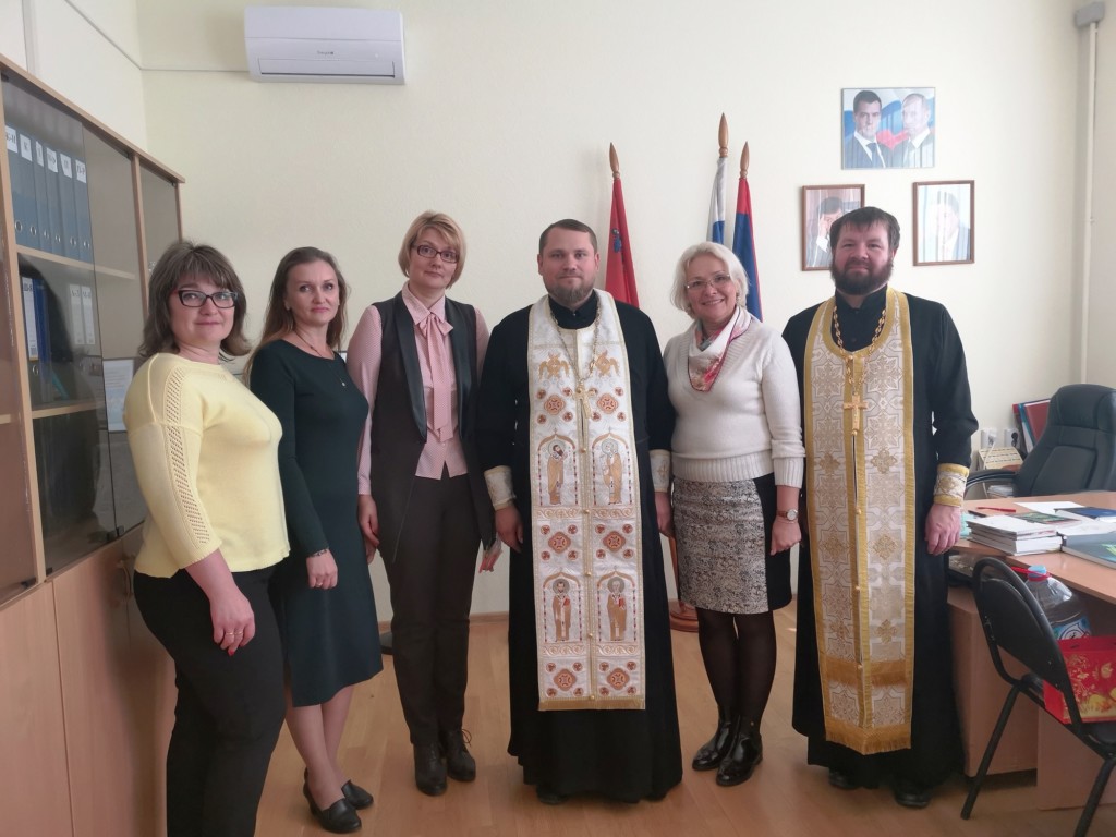 20 сентября настоятель Никольского храма г.Подольска священник Алексий Суриков и клирик храма священник Владимир Тимченко посетили гимназию №7 г.Подольска, где прошло совещание с директором учебного заведения Е.Ф.Соловьевой. На совещании были намечены планы соработничества учебного заведения и храма на 2019-2020 учебный год. По завершении совещания состоялся чин освящения гимназии.