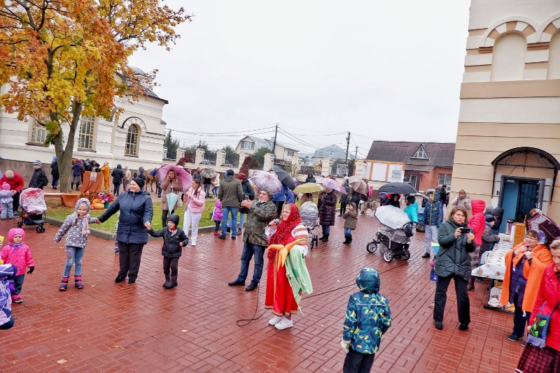 29 сентября 2019 года Православный семейный центр развития и творчества «Логос» при Воскресной школе храма Иоанна Богослова с. Сынково организовал праздник «Радуйся, Радосте наша!» Издавна на Руси крестьяне осенью устраивались праздники, на которых люди радовались плодам своих трудов, и благодарили Бога и Пресвятую Богородицу за дарование урожая. Вот и прихожане нашего храма решили продолжить эту традицию. Гостей на площади перед храмом встречали ростовые куклы — герои детских мультфильмов. На лужайке была создана экспозиция из плодов урожая этого года. Праздник начался народными играми и хороводами, в которых принимали участие не только дети, но и их родители. Далее все дети изготовили один большой подсвечник, украсили его осенними листьями и поставили его у иконы Покрова Пресвятой Богородицы. После этого всех угощали горячим чаем со сладостями. В празднике принимали участие и наши друзья – кинологический клуб «Стая снежных псов». Они привезли на праздник своих питомцев – собак породы хаски, и все желающие могли с ними пообщаться и сфотографироваться. В завершении праздника было организовано катание детей на лошадях с нашего подворья в д. Харитоново.
