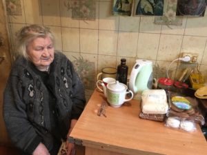 В воскресный день помощница Георгиевского сестричества Ольга Д. навестила нашу подопечную — Евдокию Филипповну. Бабушка давно просила привезти ей большие прорезиненные тапочки, мерзнут ноги, приходится надевать толстые шерстяные носки, и ноги в обычные тапки уже не влезают. Просьбу бабушки Ольга исполнила, порадовала, да ещё привезла сладостей к чаю, сахара, крупы, немного прибралась на кухне. Слава Богу за всё!