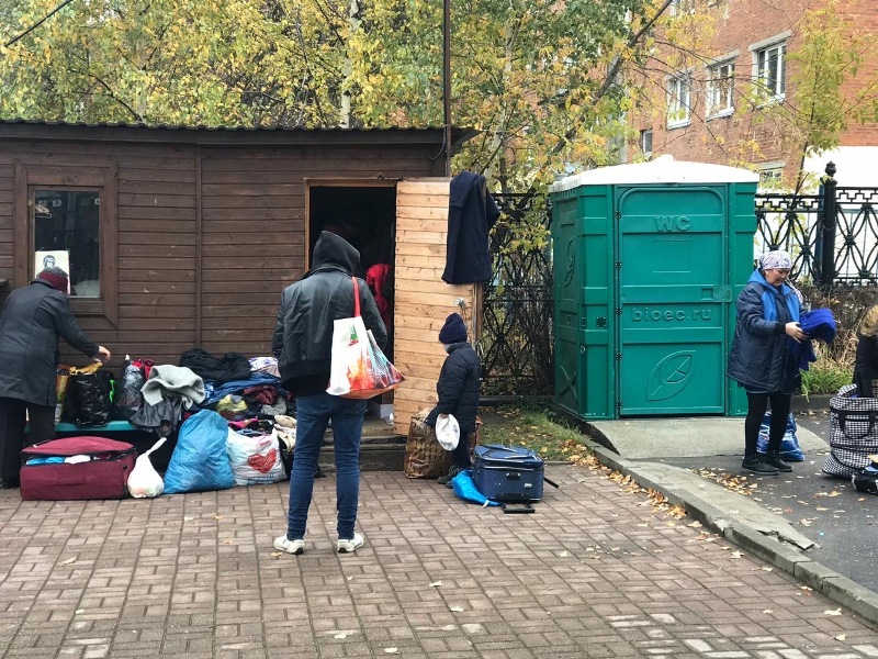 Пасмурным прохладным октябрьским утром у 9.30 благотворительная вещевая Лавка «На Благо» открыла свои двери и началась выдача вещей нуждающимся. Сегодня за 2 часа в нашу лавку пришли 25 человек. Это были и бабушки-пенсионерки, подбиравшие вещи себе и внукам, и проживающие в трудовых домах мужчины и женщины, и приезжие рабочие из Узбекистана и Таджикистана, а так же несколько бездомных. Каждый из пришедших, что-то подобрал для себя. К сожалению, полностью закрыть потребности пришедших мужчин в одежде и обуви не удалось. Мужские вещи всегда в дефиците. Друзья, если есть возможность проведите ревизию в своих гардеробах, с радостью и благодарностью примем мужские вещи и обувь для нуждающихся! Спаси Господи!
