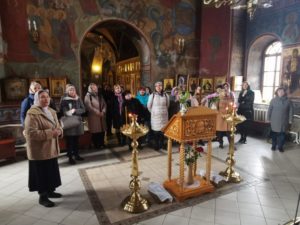 29 октября, во время осенних каникул, группа преподавателей, которые ведут в школах г. Подольска курс «Основы религиозных культур и светской этики», в сопровождении настоятеля Никольского храма г. Подольска священника Алексия Сурикова, посетили храм Воскресения Словущего д. Сертякино. Прихожанка храма Татьяна Пономарчук провела обзорную экскурсию, рассказала об истории храма, обратила внимание присутствующих на резной деревянный иконостас, роспись храма. Из документов Поместного приказа за 1729 год известна фамилия одного вотчинника трети села Сертякино – Нагаева. В 1704 году в семье помещика И.К. Нагаева родился сын Алексей Иванович Нагаев, будущий русский адмирал, член Алмиралтейств-Колегии, главный командир Кронштадского порта и выдающийся русский гидрограф. По преданию тело А.И. Нагаева было перенесено из Петербурга родственниками на погост при Воскресенской церкви. После завершения экскурсии учителям были предложены открытки с изображением храма, и его краткой историей.
