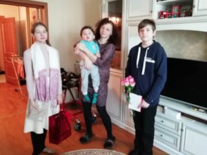 24 ноября, в Международный день матери, юные волонтёры Артем и Варвара успели поздравить трех мамочек с праздником Матери (это — Алла Пронина, Елена Блинова, Людмила Коледова), а в их лице всех женщин, которых Господь благословил на это служение — быть мамой. Ежедневно каждая мама совершает подвиг. Ее подвиг — длиною в жизнь. После поездки Артем и Варя поделились своими впечатлениями: Артем Галиев: «Мне очень понравилось поздравлять мам, которые борются за жизнь своих детей. Мы побывали у трёх, разных мам, которых связывало многое: они все защищали и спасала своих детей. Во время всей поездки я заметил, что все они были радостные и энергичны, из них » рекой » лилось счастье. Я до сих пор не могу понять, откуда они берут время, чтобы всё успевать». Варвара Медведева: «В День Матери мне представилась удивительная возможность поздравить с праздником прекрасных Матерей, попавших в тяжелую жизненную ситуацию, но не потерявших Веру, Надежду и Доверие Богу! Сегодня несмотря на то, с чем мне довелось встретиться , я получила только радостные эмоции и незабываемые впечатления. Милые мамы встретили нас с присущим им радушием и теплом, уделили нам минутки своего драгоценного времени и с радостью выслушали наши поздравления и пожелания. Перед уходом угощали нас необыкновенно вкусной едой: теплыми домашними плюшками, приготовленными с любовью; заморскими пряниками, вкус которых не передать. Одна мамочка меня сильно удивила. Она показала, а потом и дала попробовать, съедобные цветочки, застывшие капли карамели, кукольные головы, и все это было съедобно! И когда она это все успевает, учитывая то, что она ещё волонтер и многодетная мама! Сегодня я прекрасно провела время, разделив радость этого светлого праздника вместе с такими прекрасными матерями!» Нам, «взрослым» волонтерам, хотелось бы поблагодарить Артема и Варю за подготовленную программу и еще одну мамочку — автоволонтера и репортера Аллу!