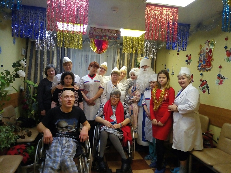 27 декабря волонтеры «Милосердия-Подольск» поздравили с наступающим Новым годом проживающих 4 корпуса Климовского дома-интерната для престарелых и инвалидов. Дед Мороз со Снегурочкой и их помощники прошли по всем трем этажам корпуса с шутками и напутствиями на будущий год, дарили подарки, меняли старые календари на новые. Проживающие и медицинские сестры — все радовались как дети, хотели сфотографироваться со сказочным Дедушкой и его Внучкой. Друзья, благодаря вашей помощи в сборе подарков, удалось сделать небольшой праздник для людей с ограниченными возможностями, для тех, кто живет далеко от дома и особенно нуждается в тепле и внимании. Спасибо вам! Благодарим замечательных Деда Мороза и Снегурочку (Александра и Софию). Они прекрасно справились с ролью!