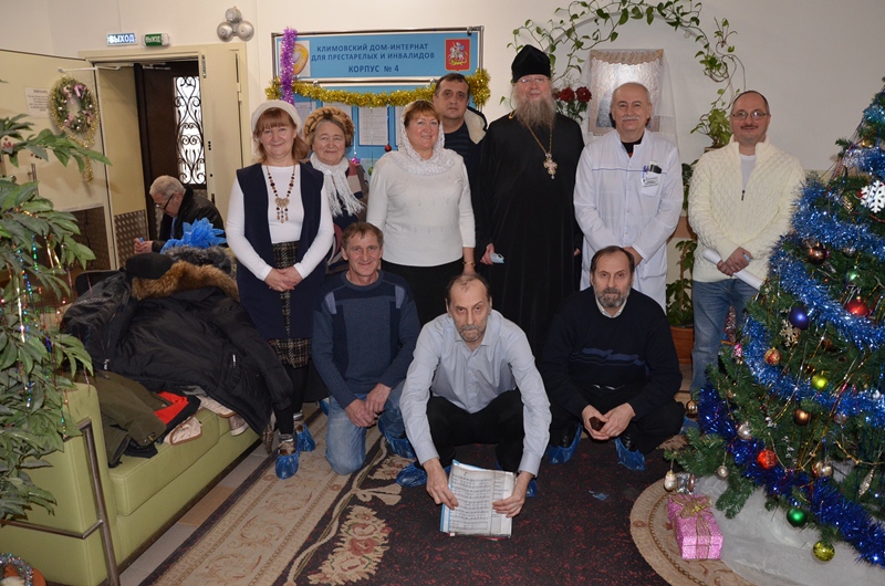 8 января в дни Святок настоятель Всехсвятского храма г. Климовска игумен Феодор (Яблоков) с прихожанами посетили 4-й корпус в Климовском Доме-интернате для престарелых и инвалидов. Приходской хор радостно пел Рождественские песнопения, а настоятель с прихожанами поздравил всех проживающих в 4-м корпусе тяжелобольных и вручил им Рождественские подарки.