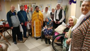 10 декабря в Рождественские святки, прихожане храма Воскресения словущего д. Сертякино в очередной раз посетили Климовский Дом-интернат для пенсионеров и инвалидов. Протоиерей Борис Трещанский совершил Божественную литургию, пожелал здоровья, поздравил с праздником, зачитал Рождественское послание Святейшего Патриарха Московского и всея Руси Кирилла. Все вместе спели песню «Ночь тиха над Палестиной». А в заключение всем ветеранам и инвалидам были розданы благотворительные подарки, чтобы в этот день их души и сердца были согреты заботой, теплотой и любовью.