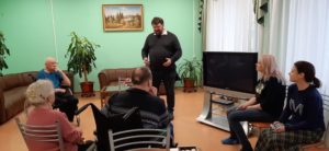 25 января состоялась традиционная встреча волонтеров Подольского благочиния «Милосердие-Подольск» при поддержке прихожан Благовещенского храма деревни Матвеевское с подопечными колясочного отделения Климовского дома-интерната для совместного просмотра фильма в рамках субботнего киноклуба. По техническим причинам показ фильма не состоялся, но волонтеры предложили своим подопечным не расходиться, а просто пообщаться, да и тем для беседы собралось не мало: минувшие праздники Рождества и Крещения Господня, а также продолжительные каникулы, в которые многие совершили интересные поездки, после которых было чем поделиться. А тут ещё и подошёл новый гость, прихожанин храма Николая Чудотворца в Кленово, Вадим, навещавший своего друга в другом корпусе, и присоединился к беседе. Вадим поделился своим опытом прихода в церковь и волонтёрской работы. Тем становилось все больше, а беседа оживленней и разнообразней. В итоге поговорили не только о значении праздников Рождества и Крещения, но и о житии святителя Николая Японского и о русской миссии в Японии, о святителе Иоанне Кронштадтском и о мученике Уаре. А к концу встречи выяснилось, что неполадки с техникой устранены и в следующую субботу киноклуб может состояться вновь.