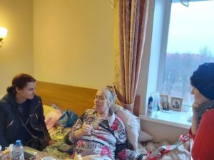 15 февраля волонтеры Благовещенского храма дер. Матвеевское посетили своих подопечных Климовского дома-интерната. Волонтеров снова ждали, большинству из подопечных необходимо общение, и они с радостью делятся с волонтёрами своими радостями и скорбями, воспоминаниями и надеждами. Среди домочадцев второго отделения много диабетиков и страдающих сосудистыми заболеваниями, частенько волонтеры застают своих старших друзей в постели и просто садятся рядом и разговаривают о том, что случилось в мире, в городе, какой сегодня праздник и какая на улице погода. Волонтеры не перестают удивляться стойкости и мужеству пожилых людей, ведь жалобы и ропот здесь слышны действительно редко, а человеческое участие ценится очень высоко. Волонтеры с радостью выполняют маленькие просьбы своих друзей: привозят воду (простую и освещенную), забирают для подопечных разные заказы из аптеки или магазина, привозят почитать книги или читают им вслух стихи. По просьбе одной из жительниц интерната волонтеры отреставрировали фотографию ее отца, погибшего в 1942 году, и сделали запрос в военный архив, где получили ответ о месте его захоронения. Вот это была радость для дочери, у которой всю жизнь была только одна нечеткая фотография в память об отце. А другая подопечная встретила самих волонтеров радостной новостью, что о них написали в газете «Утро вечера мудренее». Она бережно хранила номер газеты с сюжетом о посещении волонтёрами интерната, чтобы показать его им при встрече.