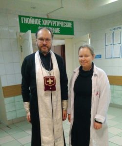 В субботу братья и сестры Георгиевского сестричества милосердия вместе с клириком Георгиевского храма священником Кириллом Ганабой навестили пациентов областного отделения термической травмы и отделения гнойной хирургии. Батюшка исповедал и причастил 7 человек, которые готовились к принятию Святых Христовых Тайн. Братья и сёстры, как обычно, раздали святую воду и собрали записочки для поминовения в храме. Дай Бог здоровья всем болящим!