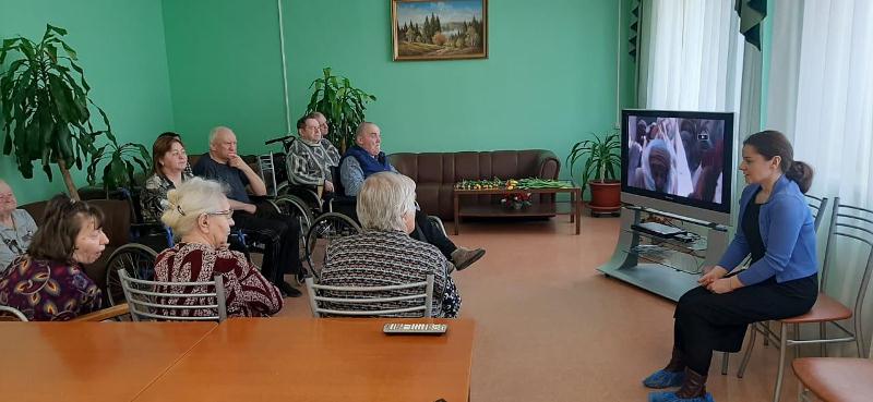 7 марта в колясочном отделении 2-го корпуса Климовского дома-интерната состоялась очередная встреча киноклуба при организации волонтёрского движения Подольского благочиния «Милосердие-Подольск» и волонтеров Благовещенского храма дер. Матвеевское. К просмотру был представлен фильм «Сын Божий» режиссера Кристофера Спенсера (США, 2014). Фильм, основанный на сюжете Евангелия от Иоанна вызвал большой интерес. Просмотр фильма решили разделить на две встречи. По окончании первой части собравшиеся обсудили такие темы как желание земных благ, до сих пор довлеющее в человеческой душе над желанием освобождения от власти греха, важность очищения сердца прощением и покаянием как неотъемлемое условие для возможности внимать Слову Божию, поговорили на тему Великого поста. На прощание волонтеры поздравили всех собравшихся женщин с наступающим праздником весны, вручив каждой тюльпаны и небольшой подарок. После волонтеры обошли лежачих и болящих подопечных, чтобы и их порадовать поздравлением с Женским днём.