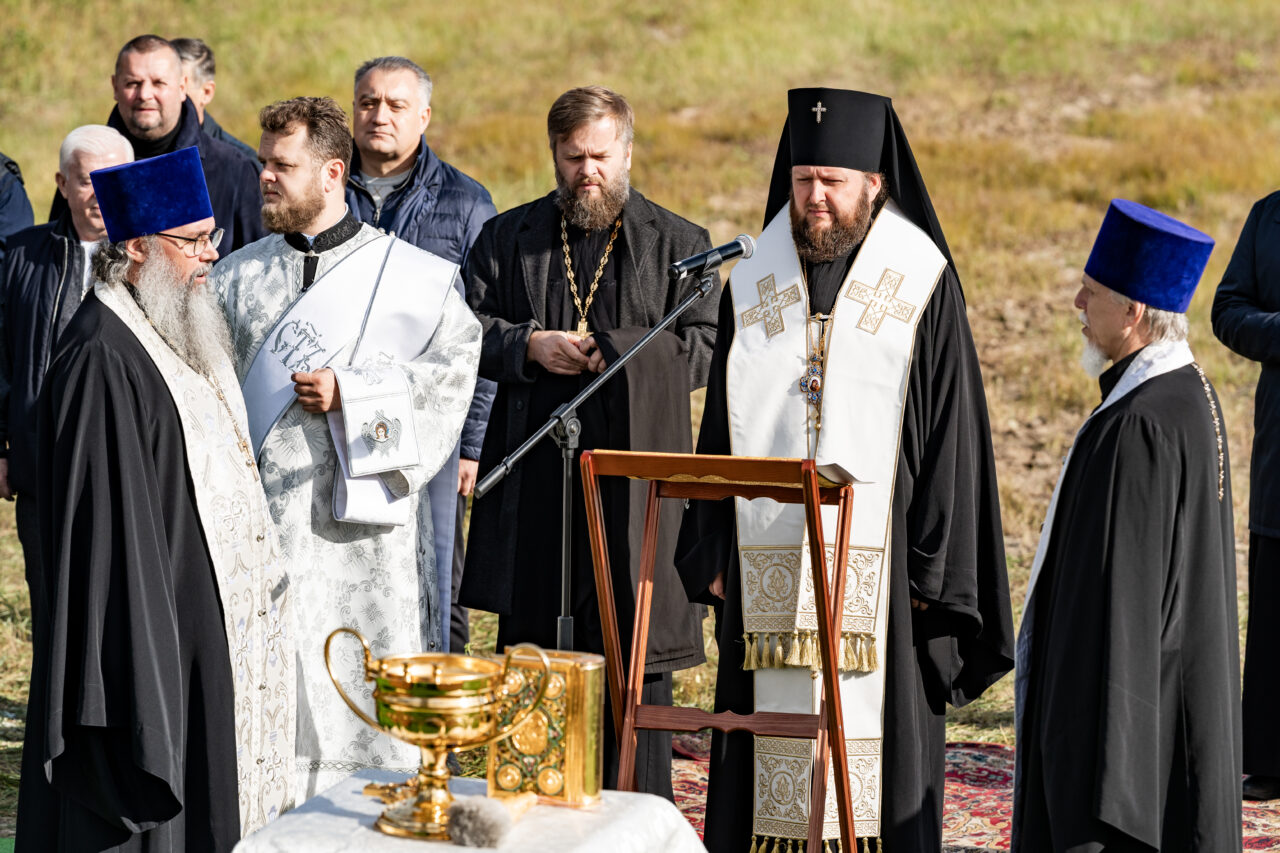 Перед началом освящения креста архиепископ Аксий обратился ко всем собравшимся с архипастырским словом.