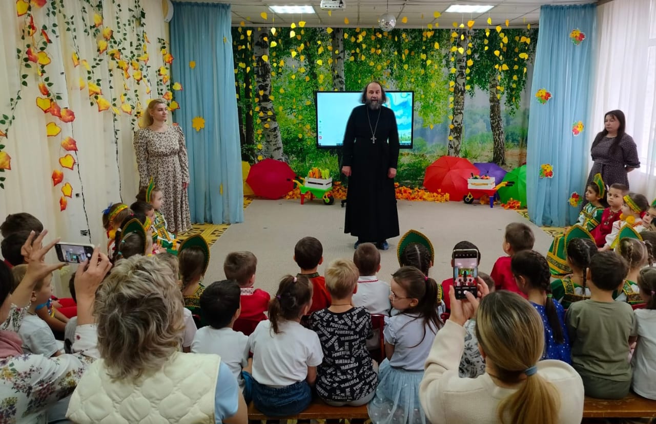 15 октября настоятель Александро-Невского храма п. Александровка протоиерей Сергий Екимов побывал в дошкольном отделении №2 МОУ СОШ №14, где в рамках проекта «Добрый сад» прошел праздник ,,Покров Пресвятой Богородицы».