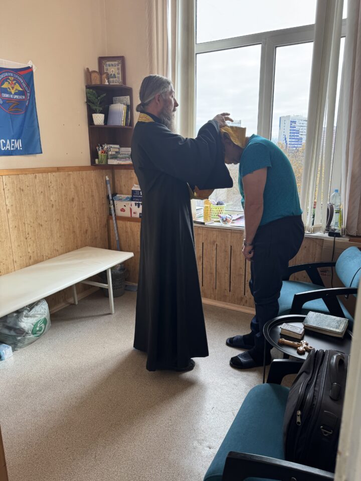 27 октября настоятель Знаменского храма пос. Дубровицы протоиерей Андрей Грицышин посетил Подольскую областную клиническую больницу, исповедовал и приобщил Святых Христовых Тайн воинов, проходящих лечение после ранений.