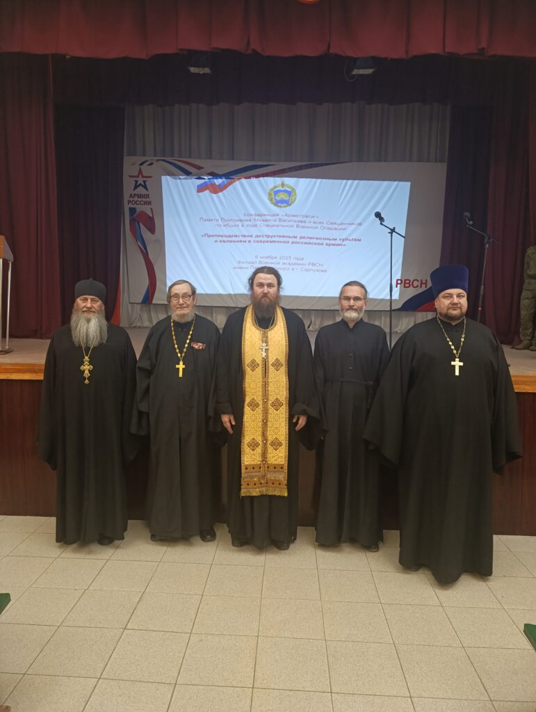 6 ноября в филиале военной академии РВСН в Серпухове в рамках XXXIV Международных Рождественских образовательных чтений прошла секция отдела по взаимодействию с вооружёнными силами, правоохранительными органами и казачеством Подольской епархии. В мероприятии приняли участие духовник Подольского Стрелковского казачества иерей Кирилл Сложеникин, атаман Стрелковского ХКО г.о. Подольск Сысоев Игорь Александрович, участники СВО, офицеры и курсанты. С докладами выступили заместитель заведующего сектором МВД Синодального отдела по взаимодействию с Вооруженными Силами и правоохранительными органами протоирей Андрей Хвыля-Олинтер, духовник Серпуховского военного училища священник Никита Овчинников, атаман Стрелковского ХКО И. А. Сысоев. По завершении мероприятия священнослужители совершили литию по духовенству и воинам, погибшим в ходе специальной военной операции.