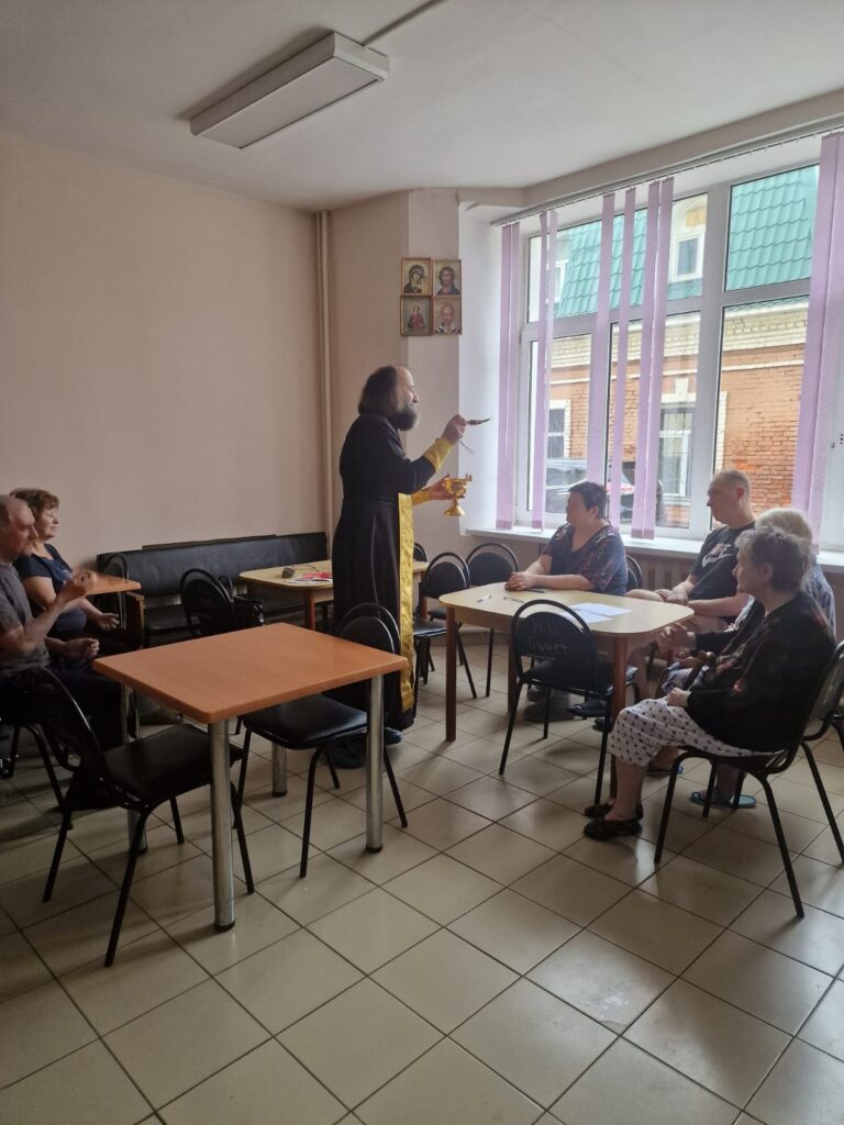 В ходе беседы протоиерей Сергий ответил на духовные вопросы как пациентов, так и сотрудников больницы, разъяснил значение церковных Таинств в исцелении души и тела. По окончании молебна отец Сергий окропил святой водой всё отделение, даруя Божие благословение всем присутствующим.