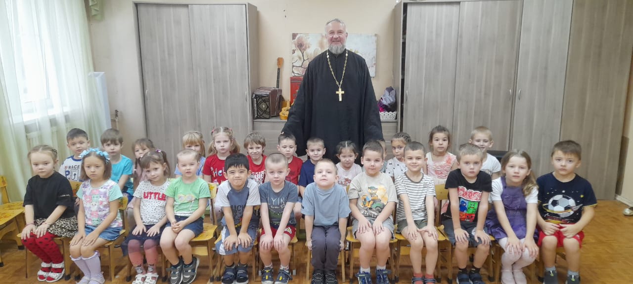 Священнослужитель провел с воспитанниками старшей группы познавательную беседу на тему: «Семья. Почему так важно уважать родителей». В доступной и увлекательной форме отец Андрей рассказал детям о христианских основах семейной жизни, о заповеди Божией почитать родителей, о взаимной любви и уважении в семье.