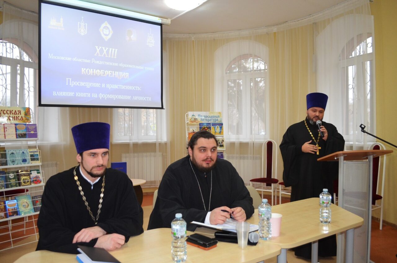 27 ноября в Центральной библиотеке имени А.А.Ахматовой города Домодедово в рамках XXXIII Московских областных Рождественских образовательных чтений прошла конференция «Просвещение и нравственность: влияние книги на формирование личности». Мероприятие было организовано Издательским советом Русской Православной Церкви и отделом по издательской деятельности и связям со СМИ Подольской епархии. Участниками встречи стали ответственные и сотрудники отдела, сотрудники и директора библиотек городских округов на территории Подольской епархии. В конференции принял участие ответственный Епархиального отдела по издательской деятельности и связям со СМИ в Подольском благочинии диакон Сергий Князькин, а также заведующая библиотекой — филиалом № 23 МУК ЦБС г. Подольск А.А. Гончаренко и ведущий методист Методики-инновационного отдела Центральной библиотеки МУК ЦБС г. Подольска Т. В. Муравьева.
