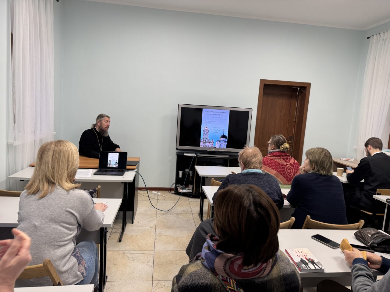 21 декабря в здании воскресной школы Знаменского храма пос. Дубровицы состоялась просветительская лекция в рамках XXIII Московских областных Рождественских образовательных чтений на тему «Два самых загадочных белокаменных храма Руси: Георгиевский собор XIII века в Юрьев — Польском и Знаменский храм XVIII века в Дубровицах». На лекцию пришли учащиеся Библейско-богословских курсов и участники молодежного клуба «ИХТИС» Знаменского храма.