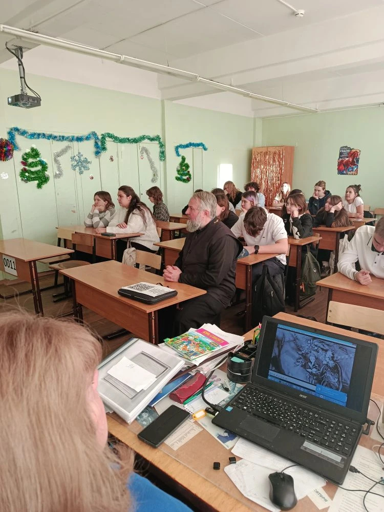 24 декабря настоятель храма Благовещения Пресвятой Богородицы д. Матвеевское г.о. Подольск иерей Андрей Саломасов в рамках программы «Диалог со священником» провёл занятия для учеников 10 классов школы МОУ «Бородино» по теме «Свобода» с просмотром фильма.