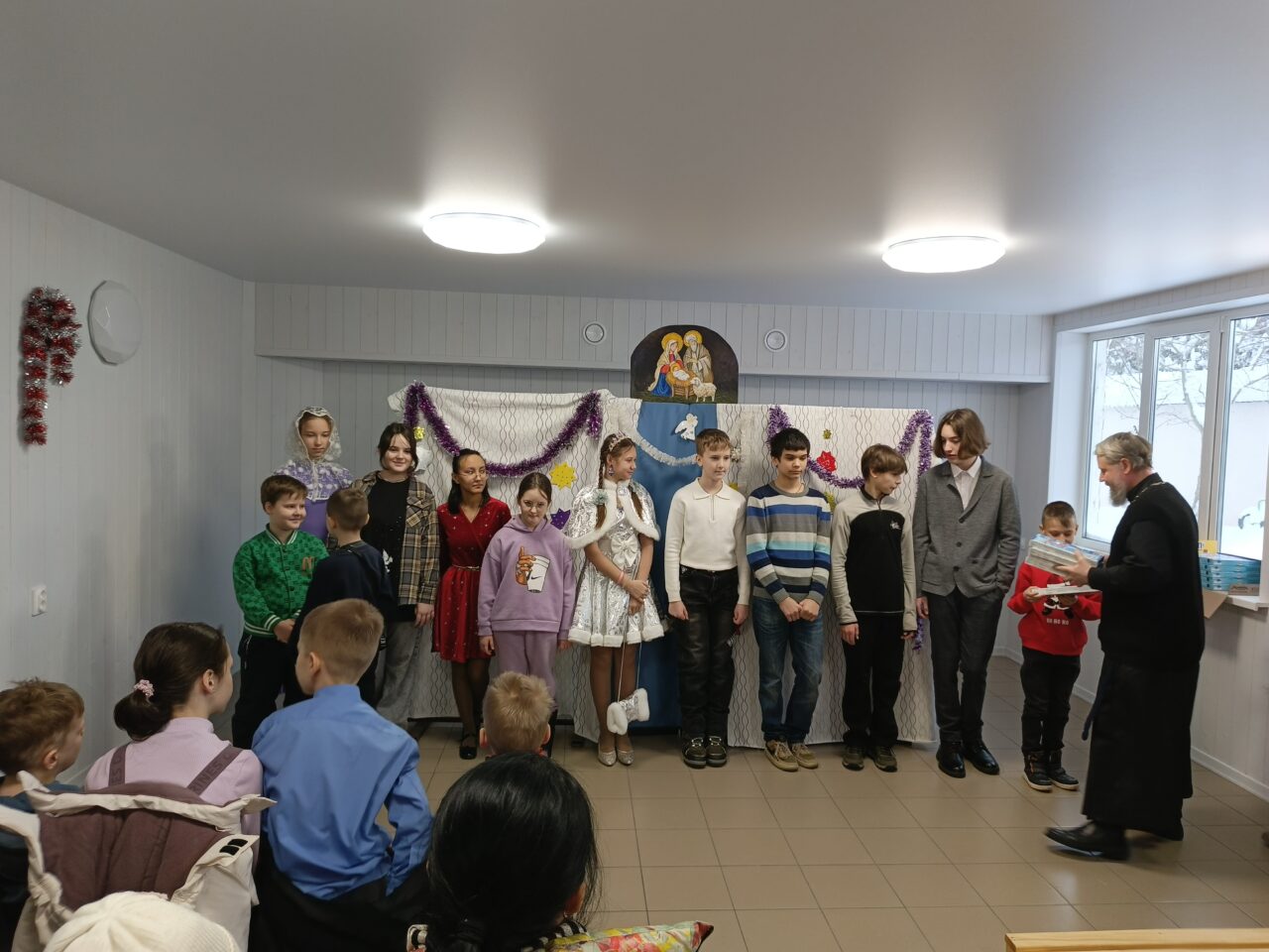По окончании праздника настоятель храма иерей Константин Веремеенко обратился к собравшимся с поздравительным словом и вручил участникам постановки сладкие подарки.