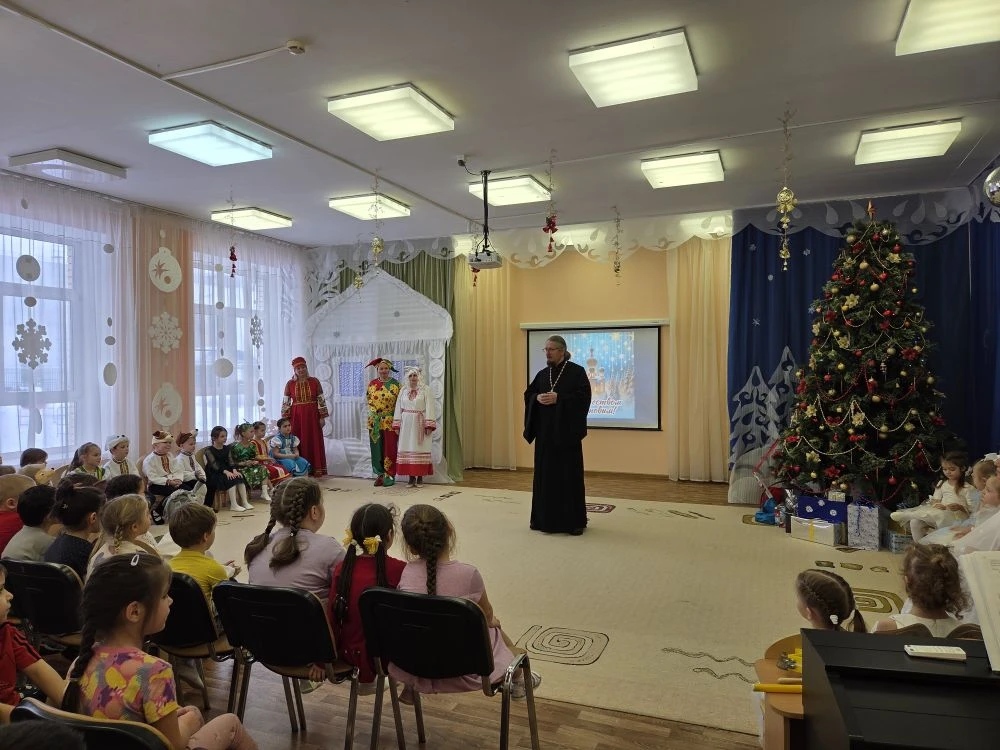 16 января в рамках просветительского проекта «Добрый сад» клирик Никольского храма мкр. Кузнечики иерей Димитрий Саввотеев посетил праздничное рождественское мероприятие в дошкольном отделение СОШ №34 г. Подольска. Перед началом праздничного концерта священнослужитель поздравил всех присутствующих с праздником Рождества Христова и наступающим праздником Крещения Господня. Праздничную программу подготовили воспитанники средней, старшей и подготовительных групп с воспитателями. Дети и воспитатели рассказали, как в старину праздновали Новый Год и Рождество Христово. Воспитанники продекламировали стихи о рождении Богомладенца Иисуса Христа и исполнили творческие номера.