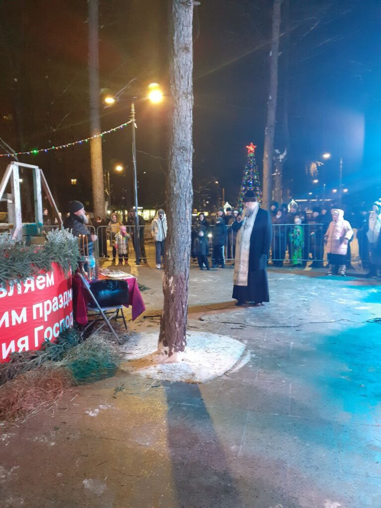 18 января настоятель Всехсвятского храма мкр. Климовска игумен Феодор (Яблоков) освятил крещенскую купель в парке Дубрава. Перед началом молитвы священник рассказал о духовном смысле праздника Крещения и обратил внимание собравшихся на необходимость духовного очищения через благодатные Таинства Церкви. В завершении о. Феодор преподал благословение всем желающим окунуться в крещенскую купель и окропил крещенской водой всех собравшихся.