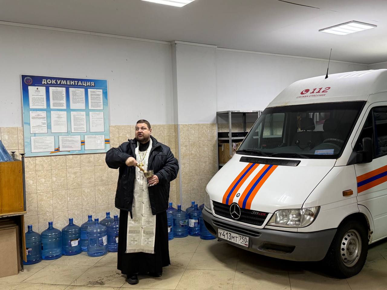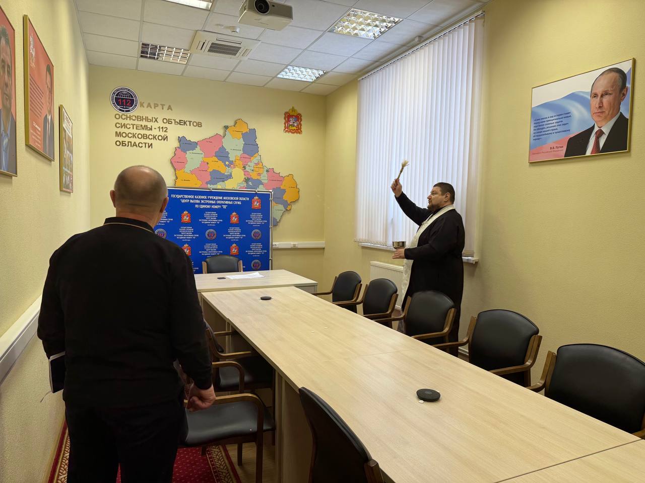 23 января по приглашению начальника ГКУ МО «Центр вызова экстренных оперативных служб по единому номеру «112» А. В. Вагутовича настоятель храма во имя святых Царственных страстотерпцев в деревне Плещеево иерей Кирилл Сложеникин совершил освящение помещений экстренной службы. Священнослужитель окропил святой водой здание службы «112», колл-центр, а также все дополнительные помещения. Отец Кирилл поздравил сотрудников центра с великим двунадесятым праздником, рассказал о духовном значении Крещения Господня и пожелал Божией помощи в их ответственной и важной миссии по спасению человеческих жизней.