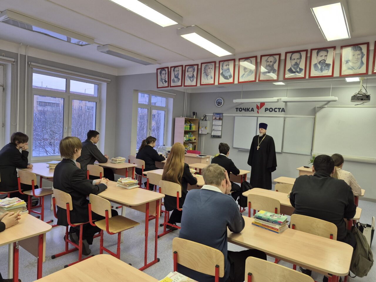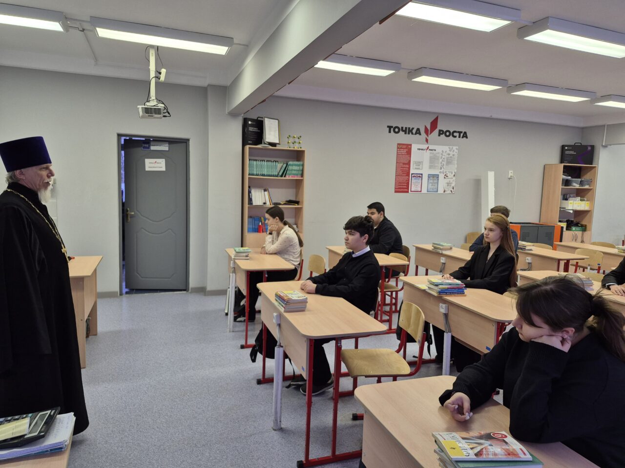 26 января настоятель Никольского храма деревни Стрелково иерей Сергий Костин в рамках проекта «Диалог со священником» провел беседу с учащимися 10 класса МОУ СОШ имени Д. И. Зернова отделения поселка Быково. Темой встречи с учащихся стала тема «ВЕРА и НЕВЕРИЕ». В разговоре с ребятами было затронуто духовное состояние человека, встречающиеся в обычной жизни. Ученики задавали вопросы и получали ответы. Встреча прошла на уровне открытости и доверия.