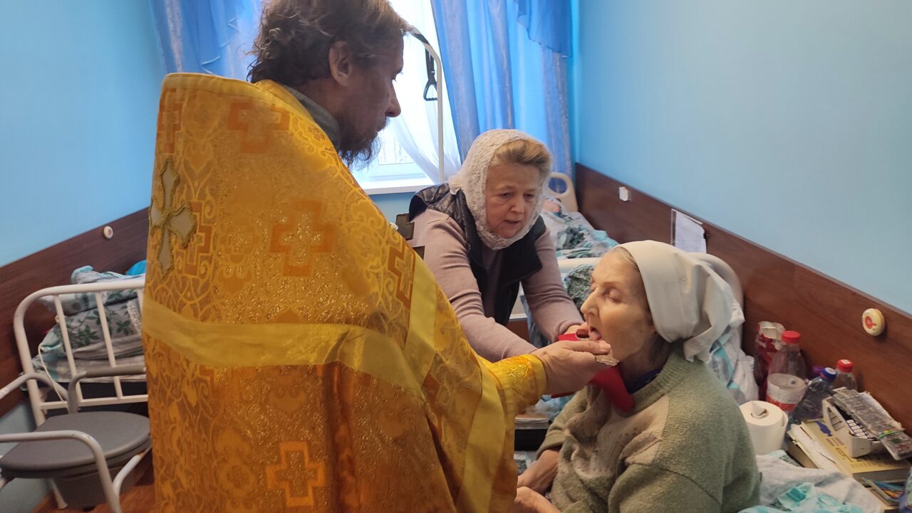 13 февраля в ГАСУСО МО «Пансионат «Подольский» в корпусе №3, в предверии Великого поста, настоятель храма Воскресения Словущего д. Сертякино протоиерей Борис Трещанский отслужил Божественную литургию, на которой все присутствующие насельники интерната смогли причаститься Святых Христовых Тайн. Затем священник причастил в палате пожилых людей, которые по состоянию здоровья не смогли присутствовать на литургии. Рассказал о предстоящем празднике Сретения Господня, приведя евангельские слова о Богоприимце старце Симеоне, о том, как крепко нужно держать веру в сердце своем, и отдалятся подальше от греха.