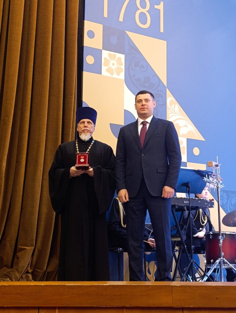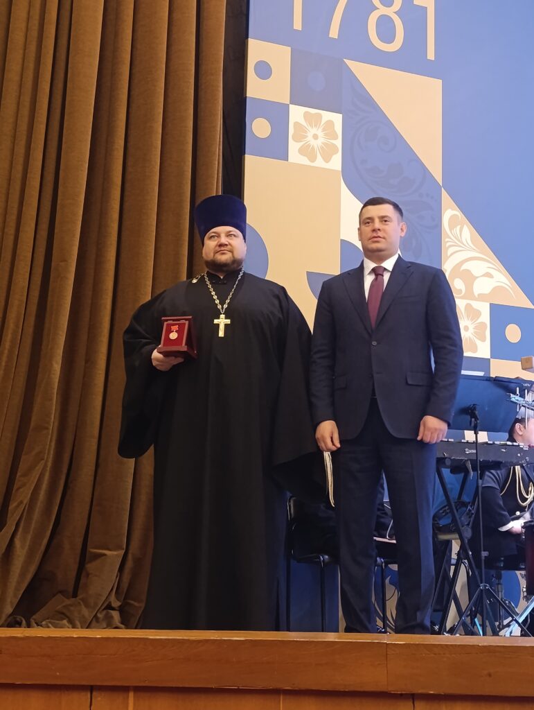 Г.И.Артамонов вручил медали «За безупречную службу» заместителю благочинного Подольского церковного округа, настоятелю Никольского храма деревни Стрелково г.о. Подольск иерею Сергию Костину — III степени, настоятелю Всехсвятского храма города Подольска игумену Феодору (Яблокову) — I степени, настоятелю храма Царственных страстотерпцев деревни Плещеево иерею Кириллу Сложеникину — IV степени.
