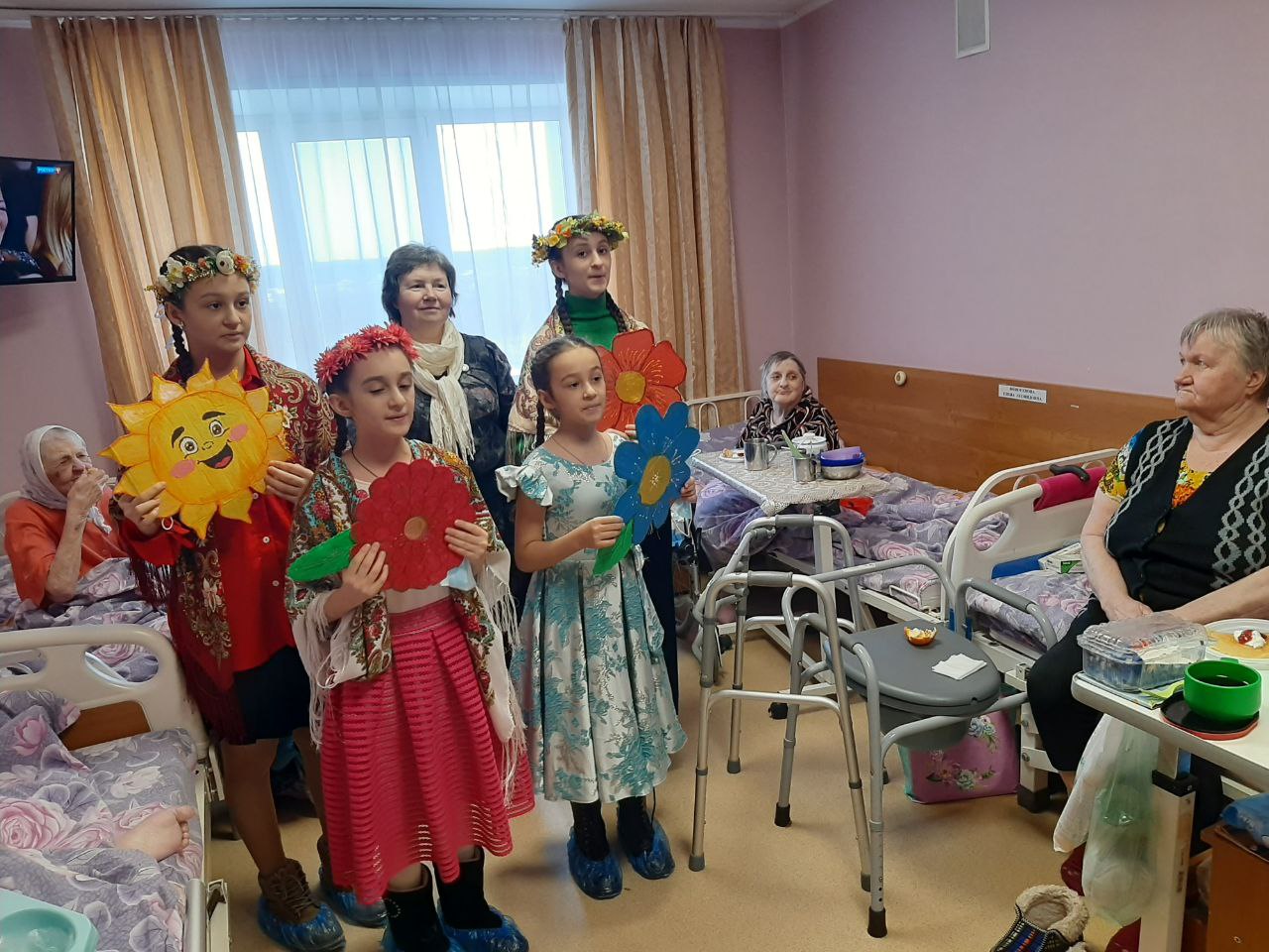Учащиеся воскресной школы Всехсвятского храма мкр. Климовск радовали пожилых людей и инвалидов стихами и песнями.