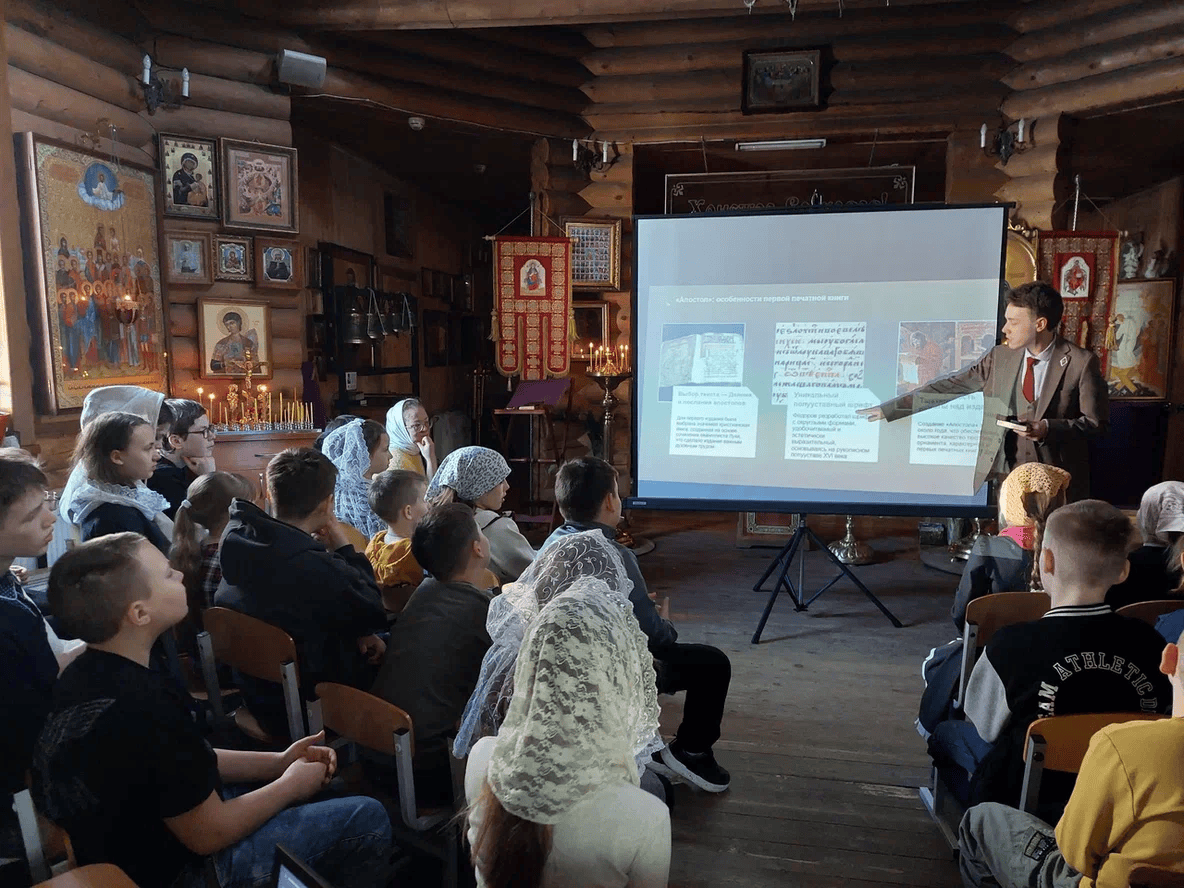 Каждый из педагогов подготовил для ребят творческое занятие. Воспитанники воскресной школы познакомились не только с историей возникновения книгопечатания на Руси, но и попробовали свои силы в роли авторов и создателей собственных книг. Под руководством преподавателей они научились писать свои имена гусиным пером, разгадали смысл названий букв церковнославянской азбуки, постигли некоторые тайны древних книг и знаков, в них встречающихся, а также познакомились с материалами, которые использовались для создания первых книг. Благодаря творческому подходу педагогов, мероприятие прошло познавательно и увлекательно. Также, для ребят был подготовлен список литературы, рекомендованной для прочтения.