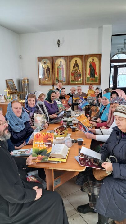 Также прошли занятия во взрослой воскресной школе, где обсуждались православные книги, в том числе новинки.